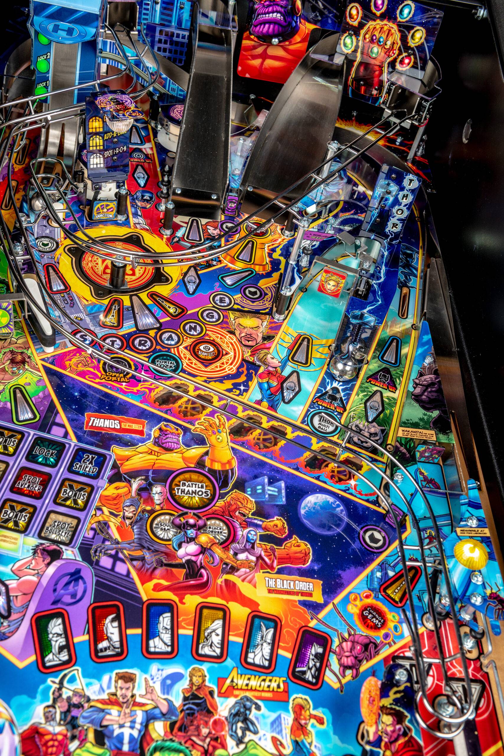 Introducing the Avengers Infinity Quest Pro pinball machine! Players are thrown into the heart of the Marvel Universe to take on the role of their favorite Super Heroes in an epic battle against Thanos and his minions!