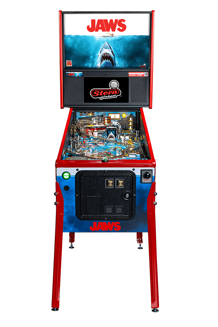 The celebration is marked with the debut of the new JAWS 50th Anniversary Premium pinball machine from Stern Pinball!