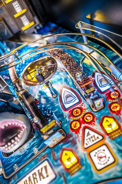 Next, players will face off against the ocean’s deadliest predators to experience the tension and excitement of the films! From the animated lighting effects to the motorized shark fin traversing the playfield, every moment is packed with adrenaline. Lastly, you’ll navigate the upper playfield and avoid obstacles to prevent the shark from crashing through the bottom of a fishing boat!