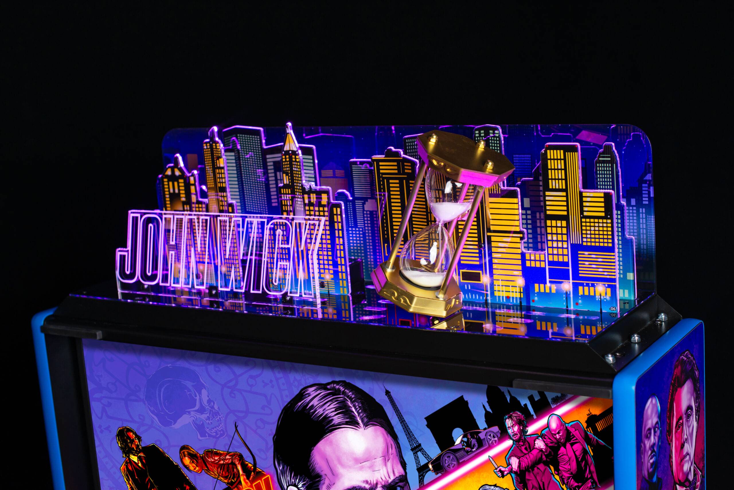 Introducing the John Wick Pinball Topper, a must have addition to your gaming experience! Accept your contract with the fully functional rotating hourglass topper! Featuring the official John Wick logo, cityscape background and over 150 RGB lights!